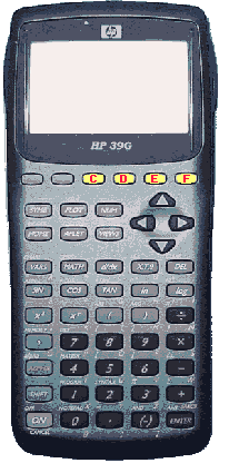 WARNING: Invoking the test described below may result in the clearing of data memory, program memory, and mode settings. The HP-39G has built-in internal, display, and keyboard test functions. These functions are accessed by pressing and holding the ON key then pressing one of the keys on the top row of the keyboard, as is done on many other late model HP calculators. A continuous internal/display test is performed by simultaneously pressing the ON key and the fifth key (labeled "E" in the illustration to the right) on the top row. This test will cycle through ERAM, CPU, RAM, and display tests, then briefly display "HP 39/40 OK" before starting again. This cycling test is cancelled by simultaneously pressing the ON key and the third key (labeled "C" in the illustration to the right) on the top row. Individual tests can be performed by simultaneously pressing the ON key and the fourth key (labeled "D" in the illustration to the right) on the top row. A menu listing seven test options will be displayed. These test options are Hard, Cpu, Kbd1, Kbd2, FullRAM, RS232, and IR. Press the appropriate number for the test. This test mode can be exited either by pressing ON, or simultaneously pressing ON and the third key (labeled "C" in the illustration to the right) on the top row.