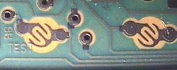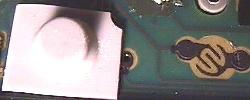 I chose to make a minor modification to my calculator to facilitate access to the test function. I first drilled a small hole though the plastic back body directly over the TEST pad. This hole is approximately the same size as the hole for the reset button. Then, I then affixed a rubber key dome with its conductive black pad, (taken from a dead calculator) over the TEST pad with double-sided tape. Finally, I replaced the back body of the calculator. Note, I did not drill a hole in the metal battery compartment cover.